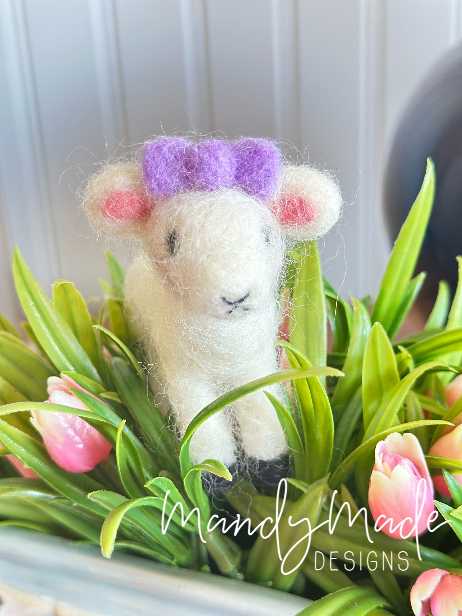 Little Lamb was hand felted by my sweet Mama using quality wool and sculpted like the magical artist she is. Each lamb stands on its own and has the sweetest little bow on her head.