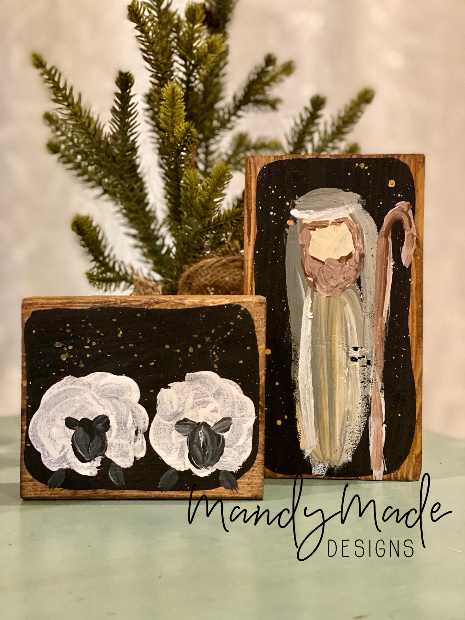 All Hand painted on solid wood block.